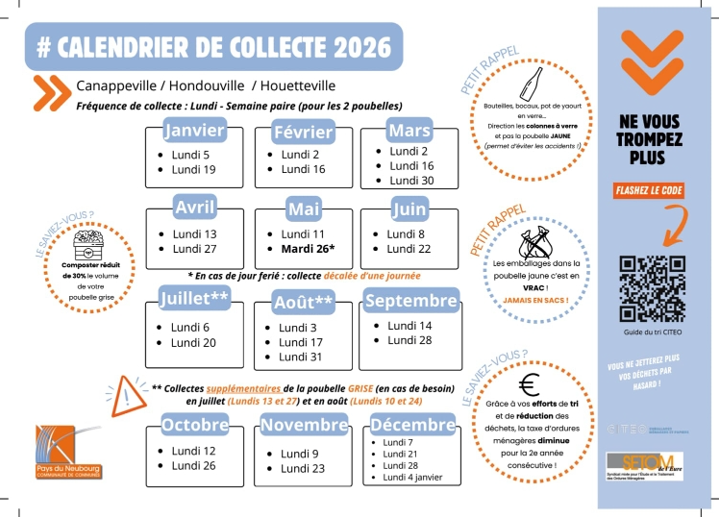 Pour les déchets ménagers, veuillez se reporter au calendrier de l’année de la communauté de commune du Neubourg.